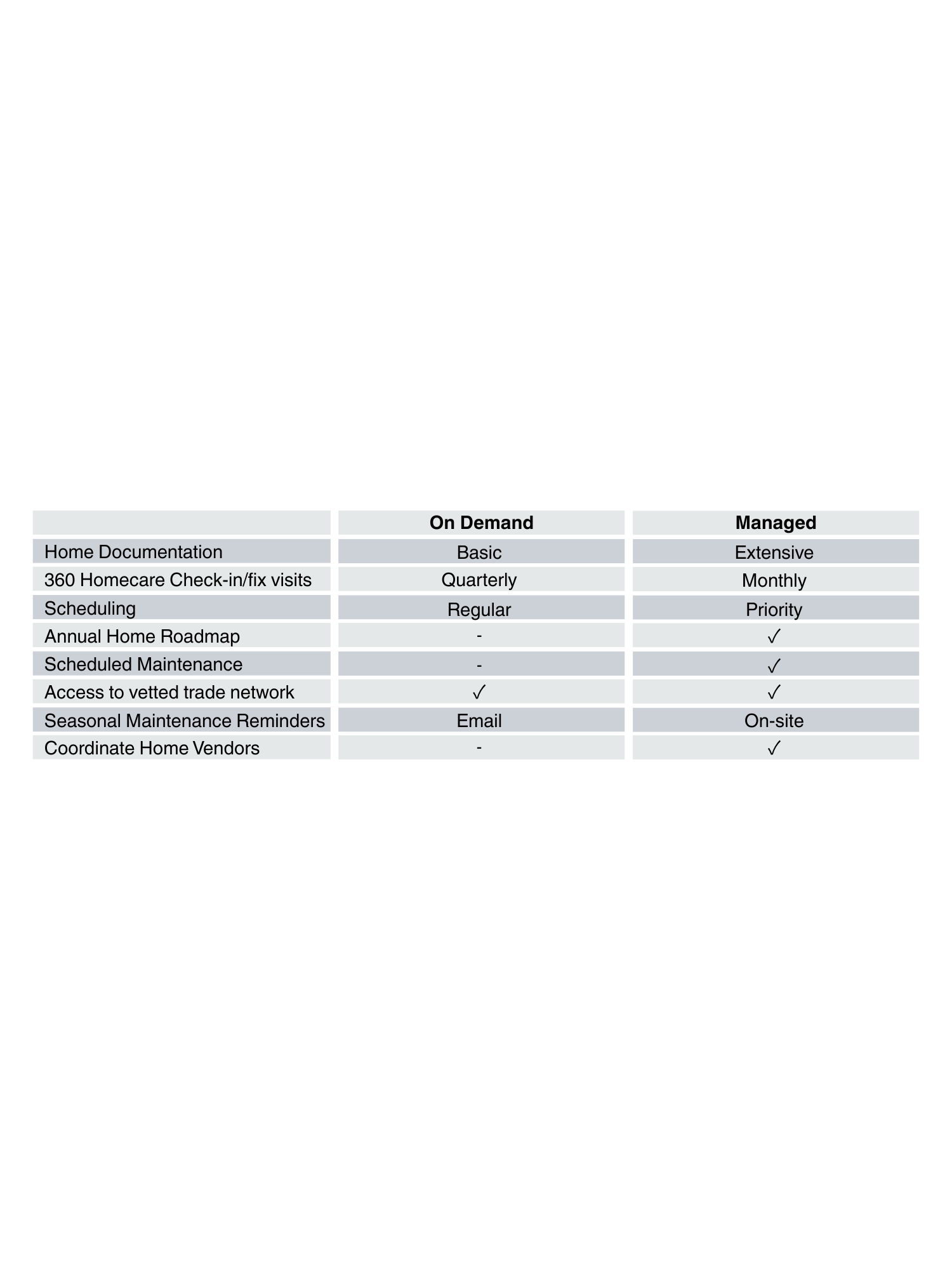 We document your home and stay involved over time - coordinating maintenance, repairs, and projects as needed or on a scheduled basis - so you don’t have to manage the details.